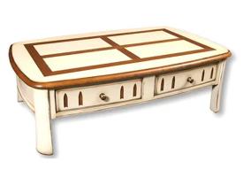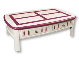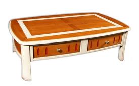 Table Basse Tradition 2 Tiroirs Merisier Laque Blanc Prune