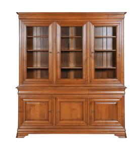 Bibliotheque Vitrine 2 Corps 3 Portes Flaubert Louis Philippe Merisier Massif