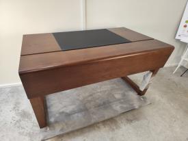 Bureau Enzo Sous Main Cuir Noir Plumier Encrier Merisier Blond